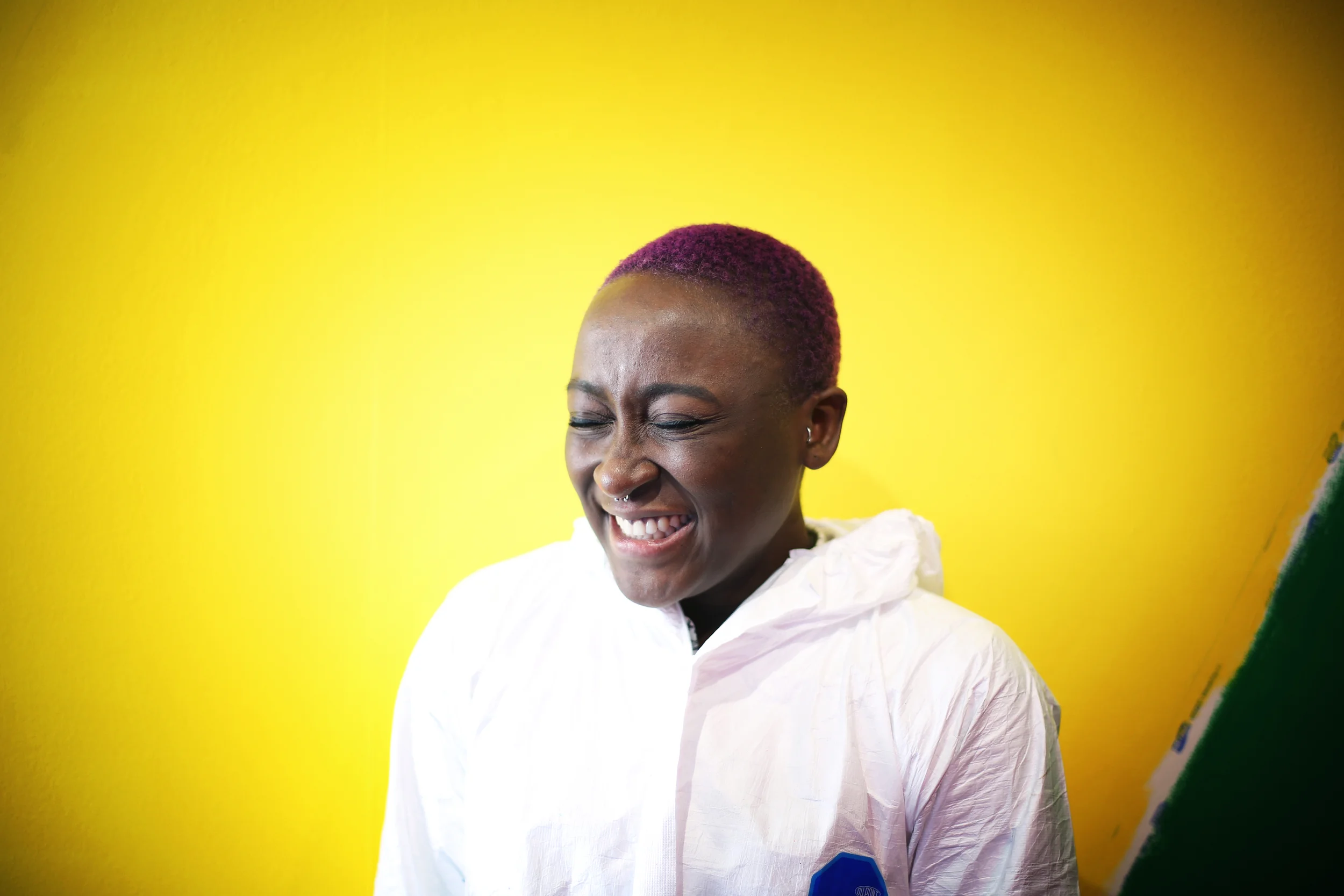 On the day I joined to help, we transformed one of Boxpark's white-wall cartons into a temple of colours. Lakwena's work takes precision, patience, and lots of teamwork, and the hours usually fly by. The added fact that Lakwena is expecting a baby (yay!) meant that all hands were needed on deck. The team have been working on the installation for the last couple of weeks in Lakwena's studio, and this was the home run. Before we knew it, we were locking up at 22:30! I managed to catch a few snapshots below in between all the painting so you can see what we got up to while creating just one of the elements of the full piece.